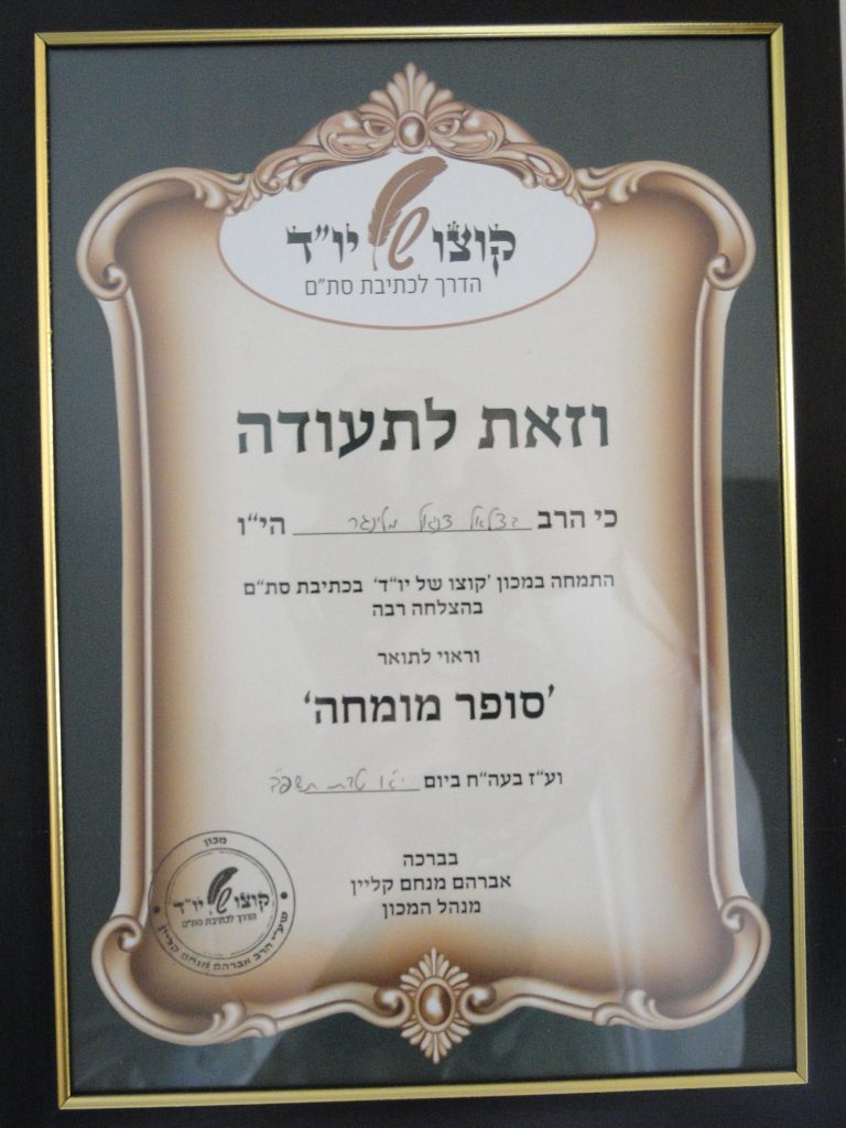 A professional Sofer since 2012, accredited by the Mishmeret Stam.